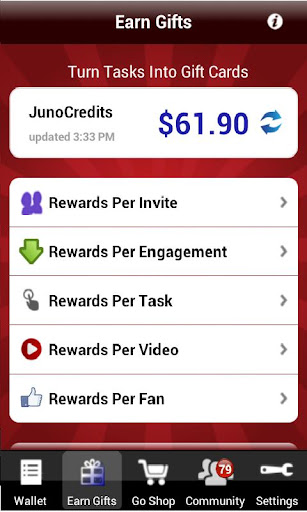 Utilice JunoCredits para obtener tarjetas de regalo como: